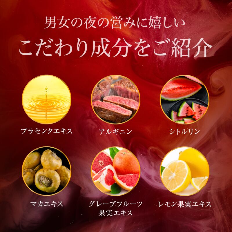 ローズマリー葉エキス・プラセンタエキス・アルギニン・シトルリン・マカエキス・